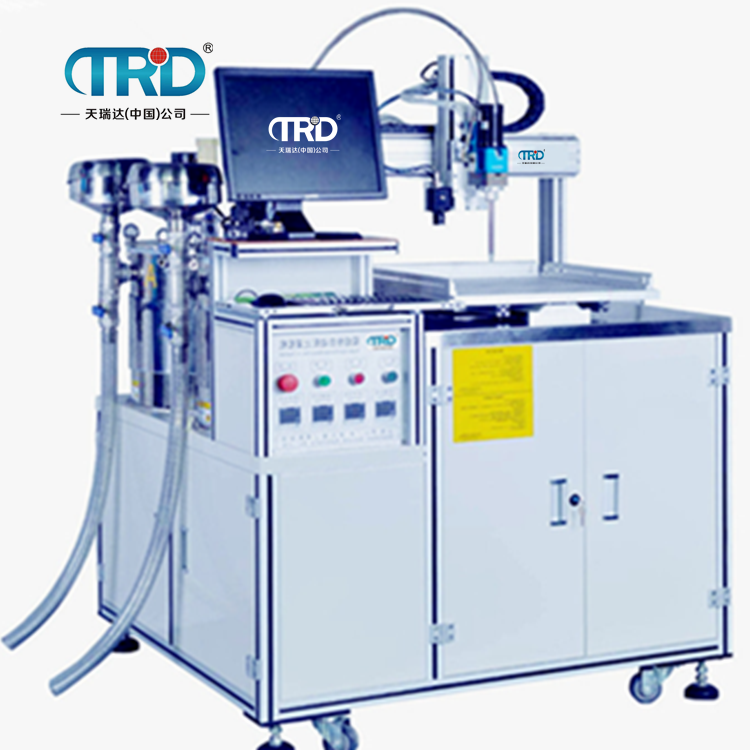 三,設備灌膠針對膠體溶液全自動配比,降低了膠水的消耗,耗品的消耗。