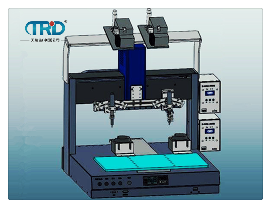 TH-5310雙平臺雙頭五軸焊錫機可對各種工件進行高速拖焊,點焊,斜線焊接等。解決了人工重復性焊接動作出現的焊點不均勻、虛焊等現象。我們的優勢是焊點一致性好,品質穩定。自動焊錫機操作簡單,生產效率高、焊接質量好、環保又節能、初學者也能達到熟練工人的焊接效果。本機采用簡易快速地輸入焊錫程序,其軟件并具有強大的編輯功能,可輕易、快速的完成程序教導。