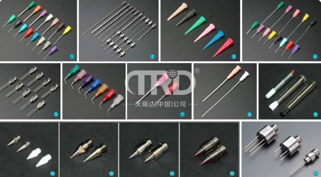 產品用途 主要應用于SMT、LED、半導體制造、醫藥、液晶面板的框膠涂布、晶振器封裝、CCD密封膠涂布、BGA封裝涂布等點膠行業。 產品特點 ◆ 適用于高粘度的液體,且易損壞的產品點膠 ◆ 皆采用獨特工藝,精密拋光無毛邊,可實現出膠精確,杜絕拉絲,雙螺旋鎖緊及大面積旋轉設計,不僅使配合更安全而且拆卸更容易 ◆ 可以任意裝卸的金屬針頭,精密焊接工藝使點膠控制更精密 ◆ 色系種類繁多,主要應用于SMT、LED、半導體制造、醫藥等點膠行業。